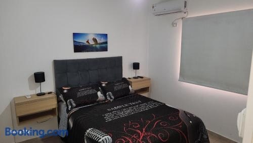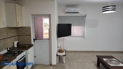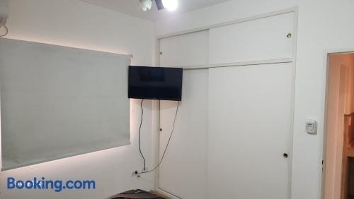 Situated in Corrientes, Departamente centrico con cochera features accommodation with free WiFi and free private parking. The air-conditioned apartment is composed of 1 separate bedroom, a living room, a fully equipped kitchen, and 1 bathroom.