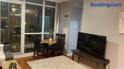 Heeft een sauna en uitzicht op de stad, 1 BD and Den at Scotiabank Arena is gelegen in het hart van Toronto. Gasten bij dit appartement hebben toegang tot gratis WiFi en een balkon.
