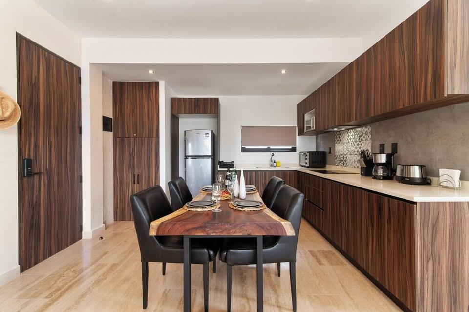 Located in Zama, a neighborhood in Tulum, this apartment is in the entertainment district. Tulum Mayan Ruins is a notable landmark, and the area's natural beauty can be seen at Tulum Beach and Tulum National Park. Xel-Há Park and Holistika Art Walk are also worth visiting. Situated in the city center, this welcoming apartment brings all of Tulum within your reach. Hunab Lifestyle Center is just steps away and Jaguar Park is within an easy 5-minute walk, so leave your car at the property, which offers uncovered onsite parking. After you return, you can unwind by the outdoor pool or sip a drink on the rooftop terrace. As for the great indoors, you can come inside and enjoy the free WiFi and digital TV. As you settle into the place, you'll find a safe, air conditioning, and concierge services. Bathroom amenities include a hair dryer, towels, and toilet paper. The kitchen is equipped with a stovetop, a full-sized refrigerator/freezer, and a freezer, as well as a coffee maker, a microwave, and cookware.